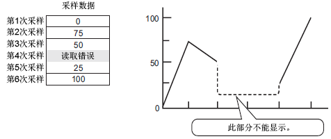 如果在读取数据样本的过程中发生了错误,将不显示图表该部分上的线条。如果错误持续,在该段时间内将不显示图表。类似地,如果使用间隔(缩放)显示,含有读取错误的间隔值将不显示。