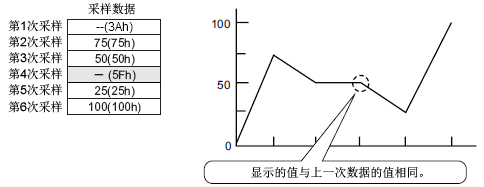 第四个样本95(5Fh)被忽略,第三个样本50(32h)显示在图表中自己的位置上。