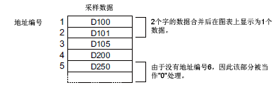设置历史趋势图上的[数据类型],使其与数据样本的位长相符。如果将[位长]设置为[16位]而[数据类型]为32位,会将两个字的数据合并起来作为32位处理。