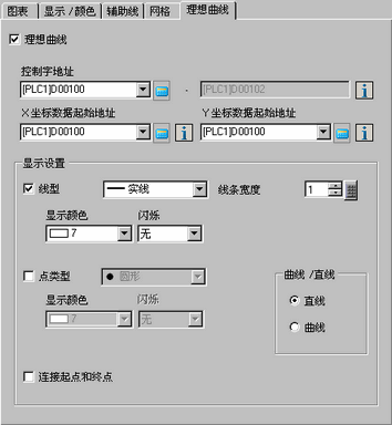 当选择了[曲线]时,将以预定的上限值显示超出显示范围的值。如果X和Y值均超出显示范围,将显示两个上限值的交点。