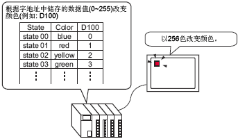 一个指示灯可以以不同颜色显示外接控制器/PLC的最多4个位地址的ON/OFF状态组合,因此相当于可以显示16种状态。通过设置不同的颜色,可以在一个指示灯上显示16种状态组合。