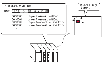 在主机上使用一个指示灯,以不同颜色显示一个PLC字地址中16个位的每个位的ON/OFF状态。