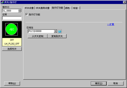 将[开关设置]选项卡的[位地址]设置复制到[指示灯功能]选项卡的[位地址]。当把指示灯功能和开关功能设置到相同地址时可使用该功能。