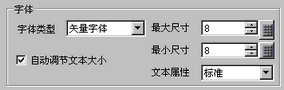 当使用[自动调节文本大小]时,定义字体的[最大尺寸]和[最小尺寸]。文本字体大小在该范围内调节。