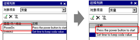 使用[注释列表]来查看逻辑程序中的变量、符号、系统变量和行注释。