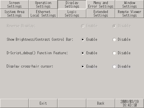 [Main Unit Settings]画面打开时,触摸[Display Settings]。