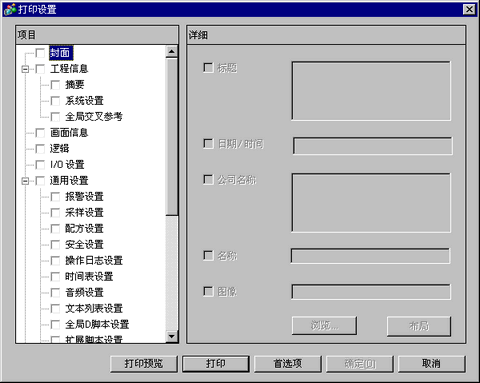 从PC向打印机输出工程信息、报警设置和采样设置。