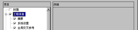 勾选[工程信息]复选框,选择所有子项目。(例如,[摘要]、[系统设置]、[全局交叉参考])