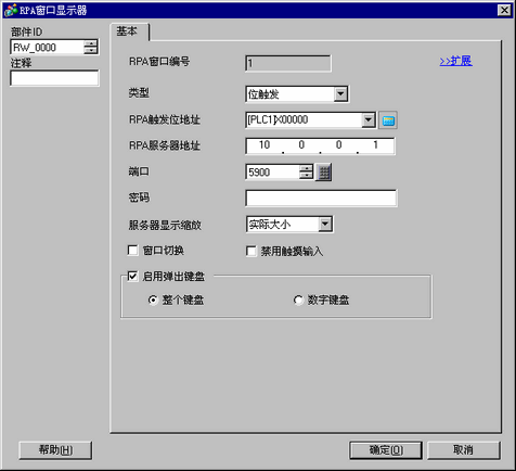 双击放置的RPA窗口显示器,打开设置对话框。