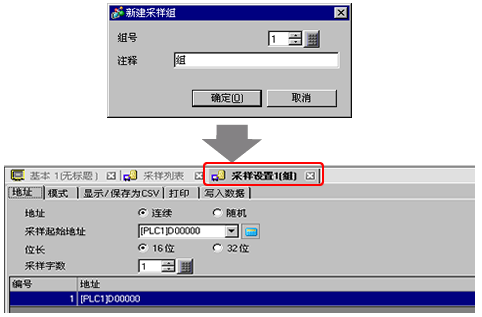 点击[新建],将弹出如下对话框。设置采样组编号,点击[确定(O)],将显示采样组设置画面。