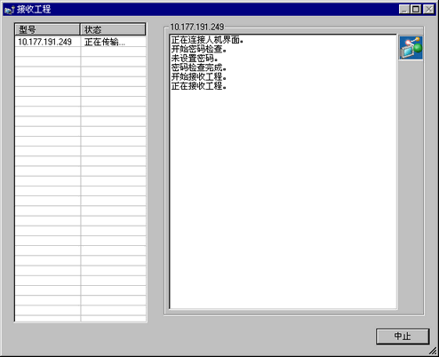 [选择人机界面]对话框出现,显示网络上人机界面的IP地址。选择目标人机界面的IP地址并点击[确定]。传输开始。