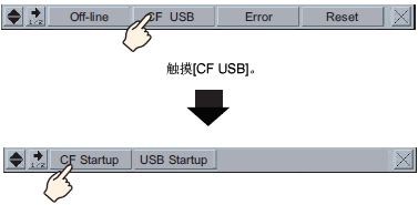 [CF/USB]。触摸它。[CF startup],触摸它以重置人机界面