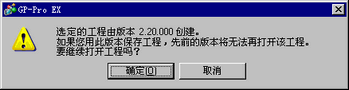 打开用旧版本软件创建的工程文件时,会出现如下的警告消息。
