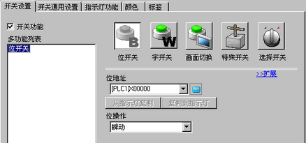 将[开关设置]选项卡的[位地址]设置复制到[指示灯功能]选项卡的[位地址]。将指示灯功能和开关功能设置到相同地址时可使用该功能。