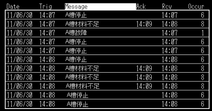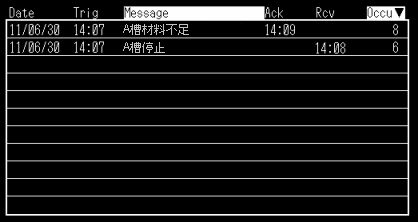 如果按[Elapsed Time]或[Occurrences]字段排序,一条报警仅会显示一行,该行具有最近的触发/确认/恢复日期/时间。