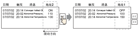 根据滚动方向,按照[报警]中设置的注册号(行号)的升序显示报警消息。