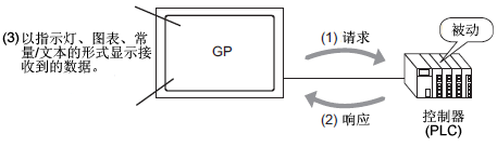 人机界面向控制器/PLC发出请求。然后控制器/PLC响应来自人机界面的请求。