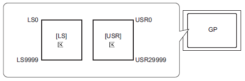 人机界面的内部寄存器[#INTERNAL]包含两个结构区:[LS]区和[USR]区(如下所示)。