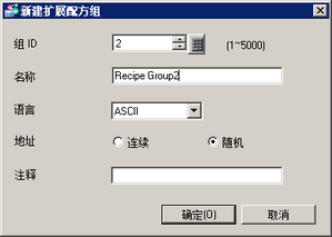更改选定配方组的设置。点击[属性更改],将显示一个对话框,其中的设置与[新建扩展配方组]对话框中的设置相同。