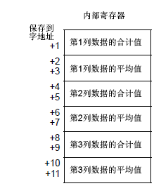 计算数据(合计、平均、最大、最小)的结构根据[显示/保存为CSV]选项卡进行设置并如下图所示。位长是32位且数据被保存在内部寄存器中。
