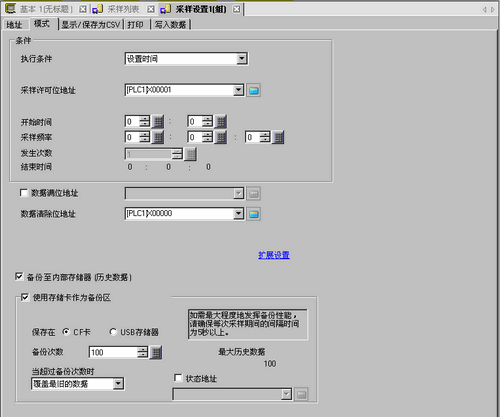 选择控制是否执行采样的地址。当该地址为ON时,采样将从指定的[开始时间]开始,这之后,在设定的[采样周期]的每个周期上读取数据。