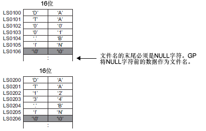 可以为第二个和第三个参数(文件名)指定内部寄存器。指定内部寄存器可允许文件名间接地址指定。此外,当指定参数2内部寄存器时,文件夹名称+文件名的最大长度为14个单字节字符。
