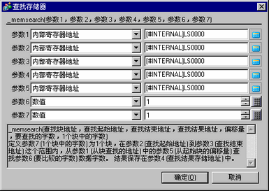 _memsearch([要查找的块地址]、[查找起始地址]、[查找结束地址]、[查找结果存储地址]、自起始块的偏移、比较字数、1个块中的字数)