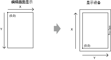 在[纵向]设置的情况下使用这些功能时,请使用下图所示的人机界面坐标。