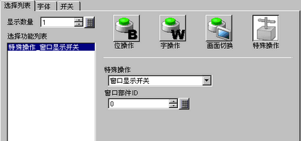 该开关与触发窗口的窗口部件附属开关相同。按下该开关,将显示指定窗口。再次按下它,窗口关闭。