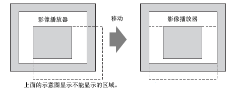 如果影像播放器的尺寸小于视频输入图像,将不显示画面不能容纳的部分区域。要查看整个图像,使用移动开关移动图像。