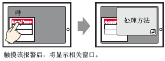 显示在报警部件的左上方。将位置设置标志移动到准备作为子显示显示文本窗口的位置。现在设置完成。