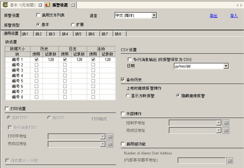 如果未勾选[备份历史]复选框,当关闭或重置人机界面时,历史报警数据将被清除。