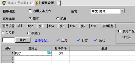 在[位地址]中,设置位地址 ,以监控报警触发。