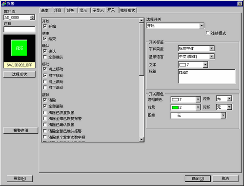 无论选择何种开关类型,开关颜色的设置对所有报警部件都是相同的。