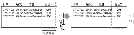 根据滚动方向,按照[报警]中设置的注册号(行号)的升序显示报警消息。