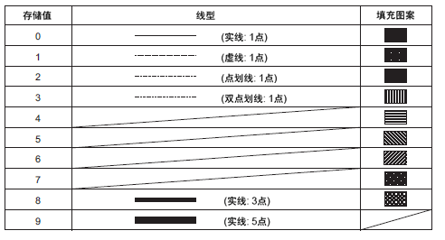 显示属性(如线型和图案)根据各图形的不同而有所不同。在绘制点时,显示属性(+1)数据被忽略。