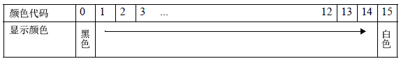 如下所示,在位0至7中保存显示颜色代码,在位8至15中保存背景色代码。