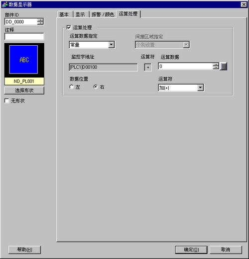 如果将[运算数据指定]设置为[常量],请在此处输入运算数据。[基本]选项卡上的每种[数据类型]都有不同的大小范围。如果设置了[地址],请指定将保存运算数据的地址。