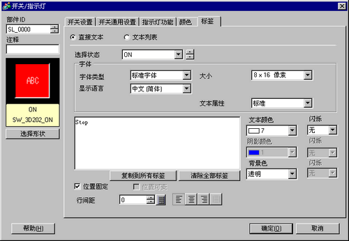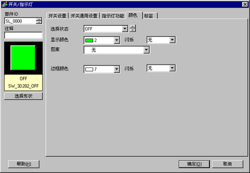 双击画面上放置的指示灯。将显示[开关/指示灯]对话框。