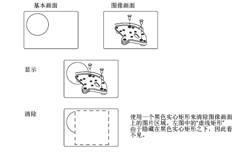 如果为图片选择了[清除操作],将清空一个图片大小的矩形区域并将其显示为黑色。