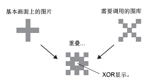 如果重叠目标是图片字体,它将没有异或显示。