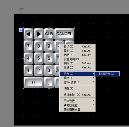 选择放置在画面上的键盘,右击,从[组合(G)]中选择[取消组合(U)]。现在您就可以重新安排各个按键了。