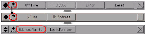 先触摸屏幕右上角然后触摸左下角,或者触摸左上角然后触摸右下角来显示离线系统菜单。触摸第三个菜单中的[Address Monitor]开关。