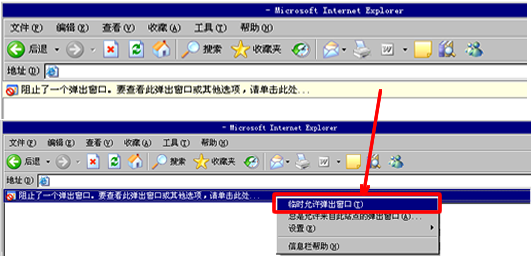 点击信息栏,选择[临时允许弹出窗口],显示被阻止的窗口。