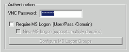 在[RPA窗口显示器]中输入的密码必须与在[Win VNC Current User Properties]对话框中定义的[VNC Password]相同。当服务器计算机的Ultra VNC Server启动时,将显示此对话框。