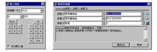 双击[复制存储器],并在接下来的对话框中定义目标地址、源地址和字数等参数。