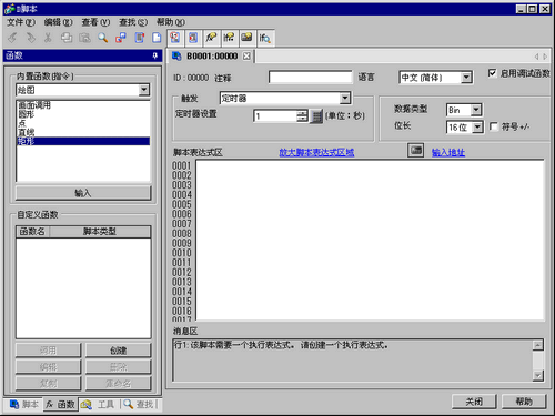 点击[函数]选项卡。内置函数使您能够轻松地放置一条在脚本中使用的命令。