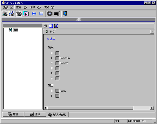 如果[地址]视图或[逻辑]视图显示在[输入/输出]视图的上面,点击[输入/输出]选项卡,使[输入/输出]视图显示在最上面。