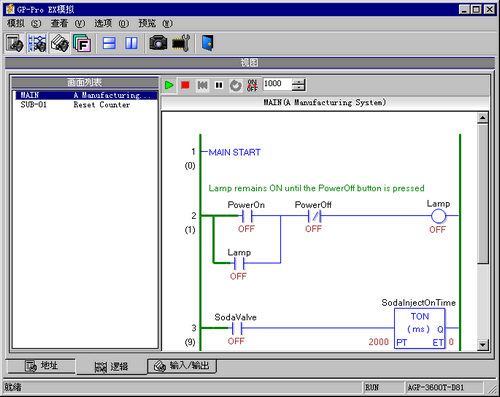如果[地址]视图或[逻辑]视图显示在[输入/输出]视图的上面,点击[逻辑]选项卡,使[逻辑]视图显示在最上面。