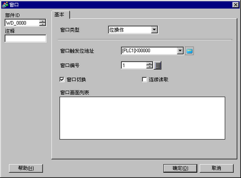 将窗口部件放在基本画面上,在放置位置上显示窗口。